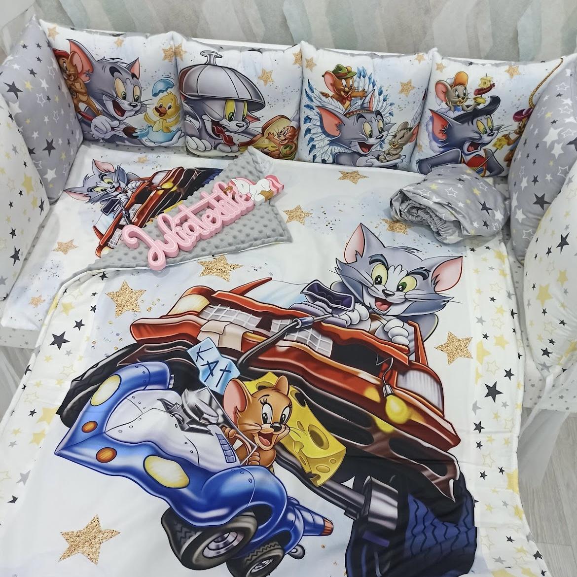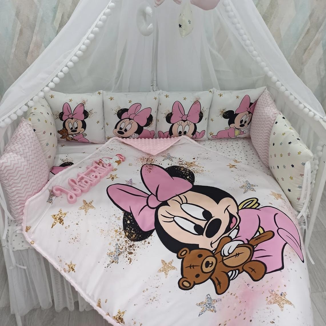 Bumper cushion set consisting of:- 2 pillows with michey mouse print- 2 simple cushions with colored stars- 2 cotton cl...