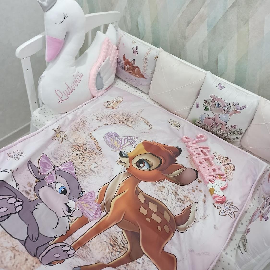 ° 4 digitally printed cushions with different cartoon images of Bambi and his friends.