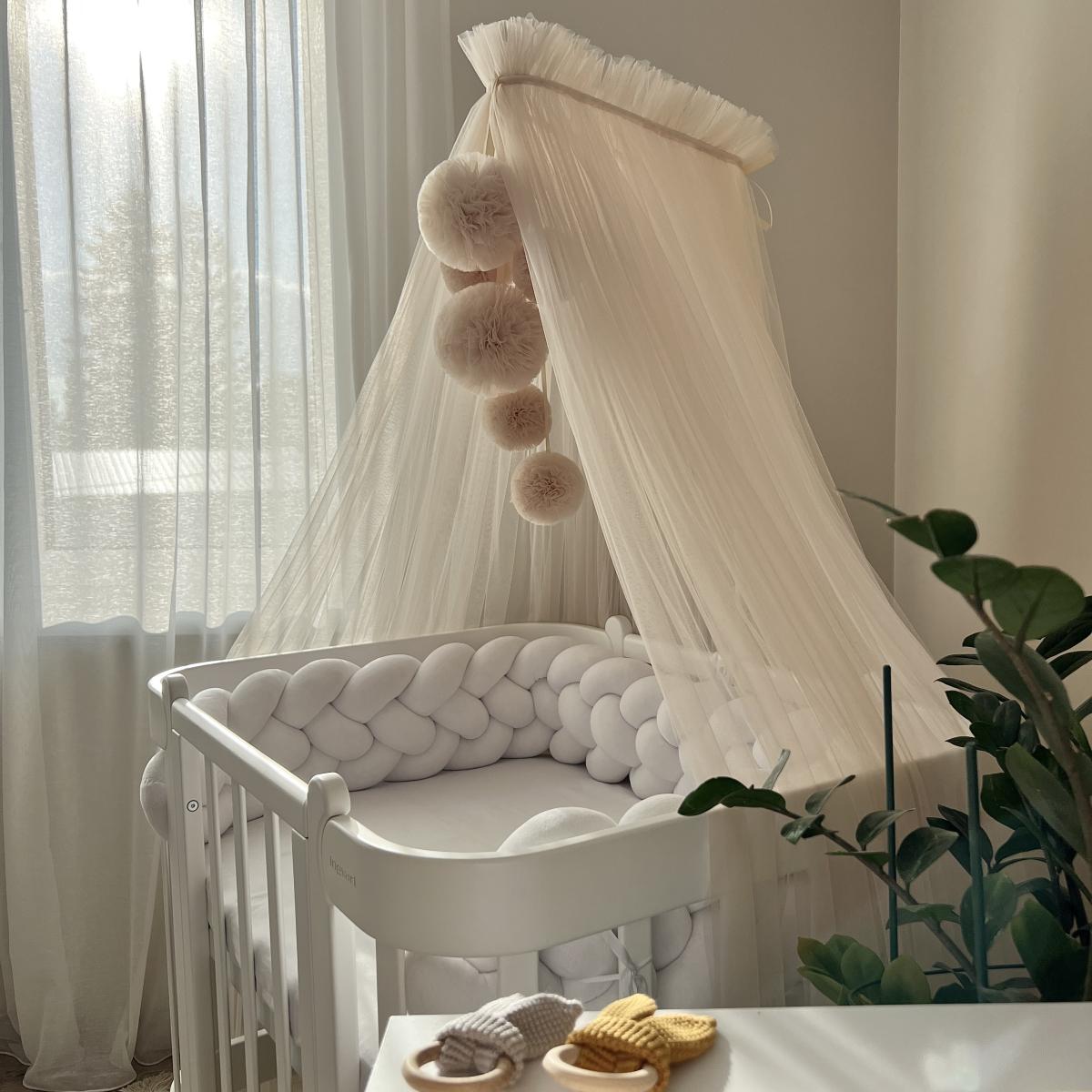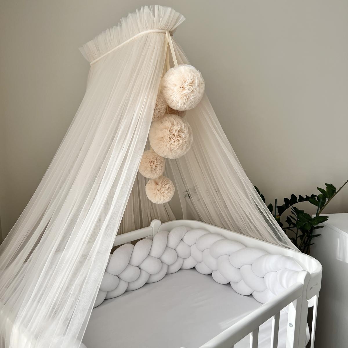 Classic Nude Tulle Canopy with 2 Pom Poms for the Baby’s Room