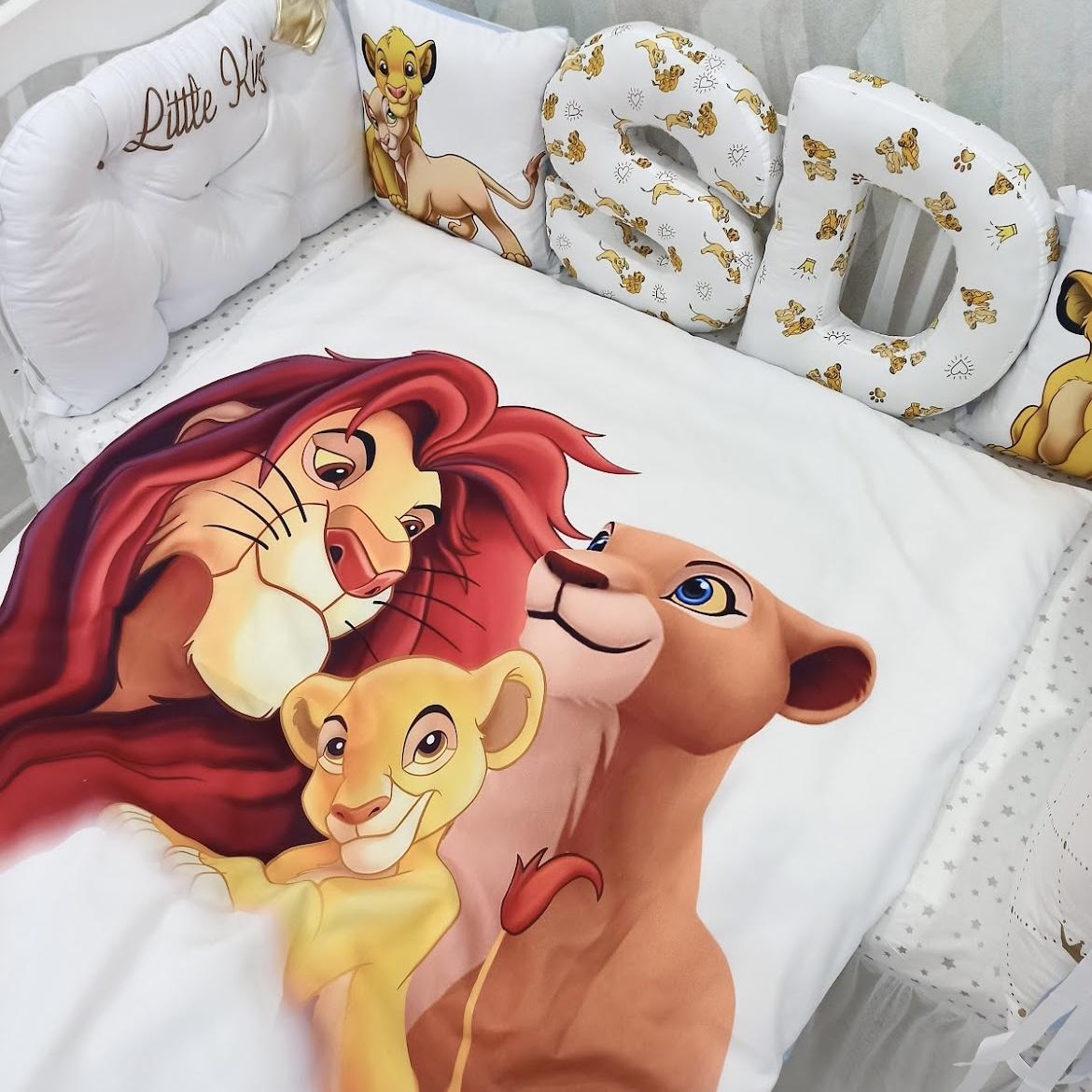 This set is made in delicate colors, the pillows have a clear and vivid image of a family of lions, and also has original pillows in the form of letters.
