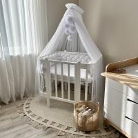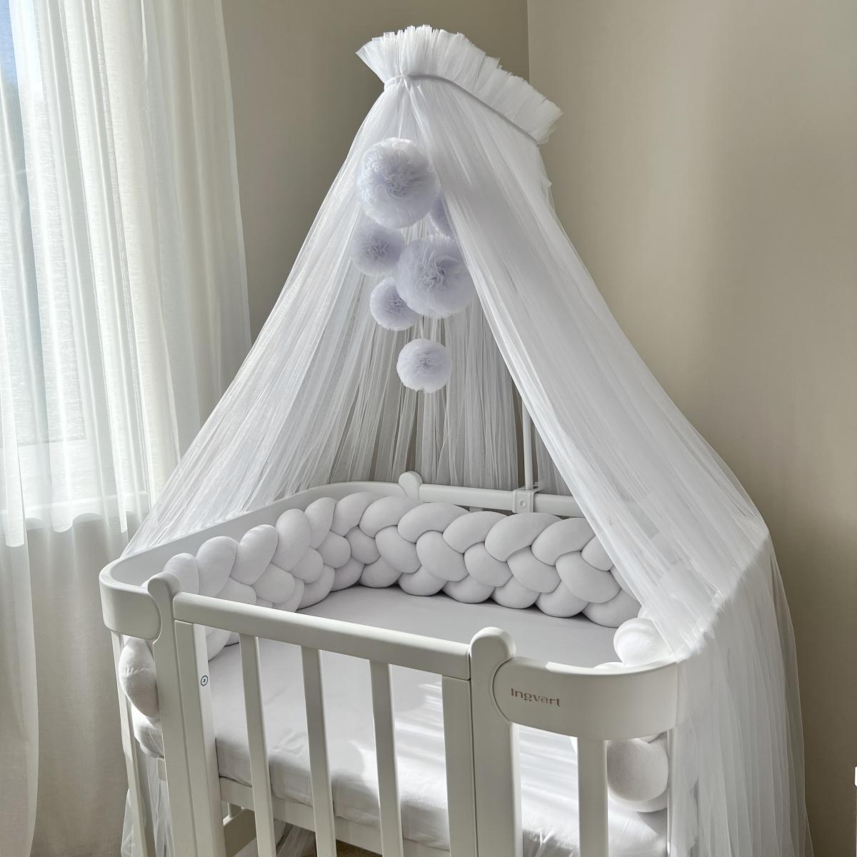 Wrap your little one in a soft embrace of elegance with our Classic White Tulle Canopy with 2 Pom Poms