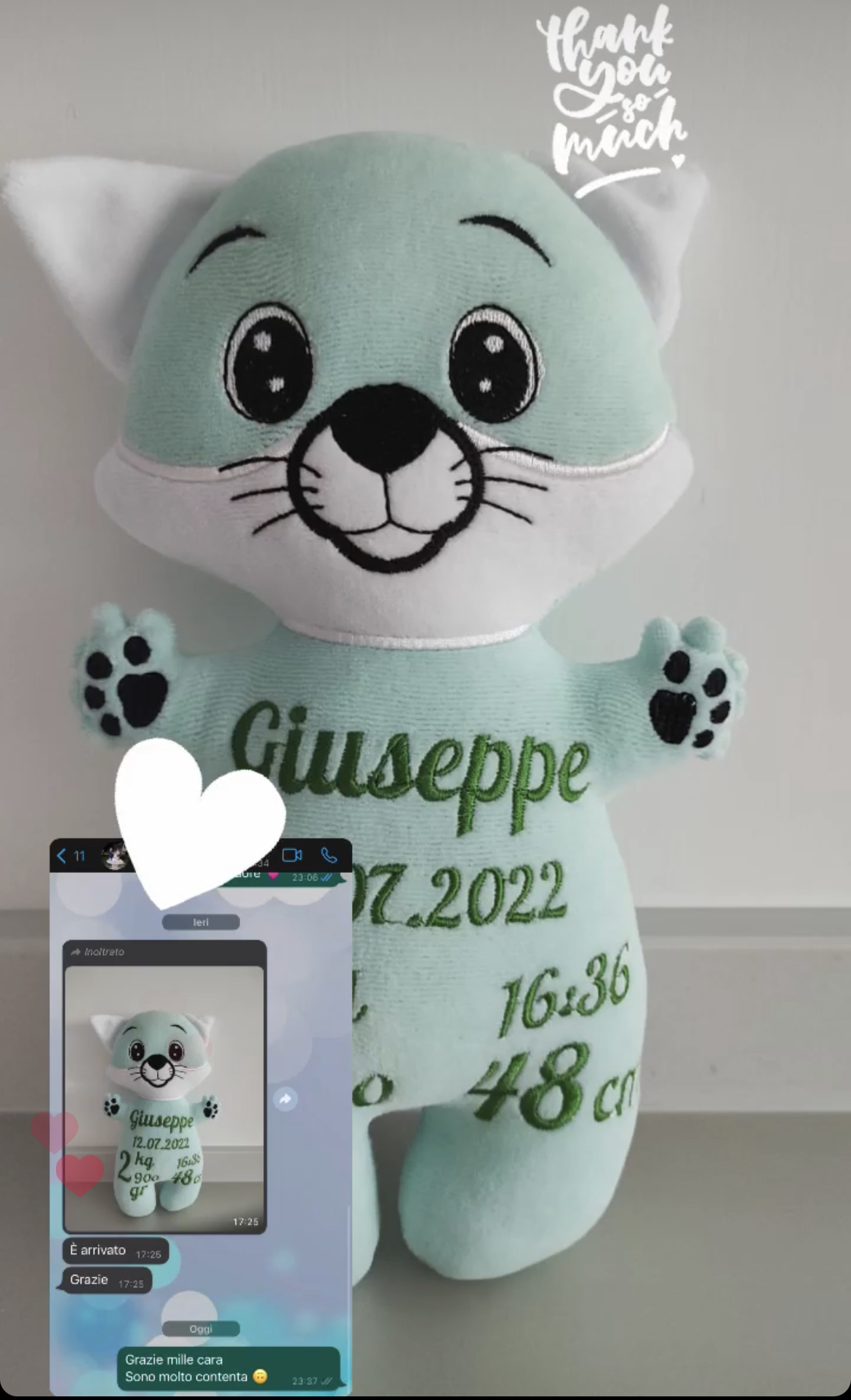 Semplicemente stupendo!!! Insieme al sacco abbiamo acquistato scarpine e catenella ciucco è il risultato finale è stato spettacolare… Tutto meraviglioso!!! E complimenti a Julia per la sua gentilezza e disponibilità. Grazie. Continueremo a fare acquisti futuri Prodotto: Sacco nanna con la stampa gattina minu rosa bianco