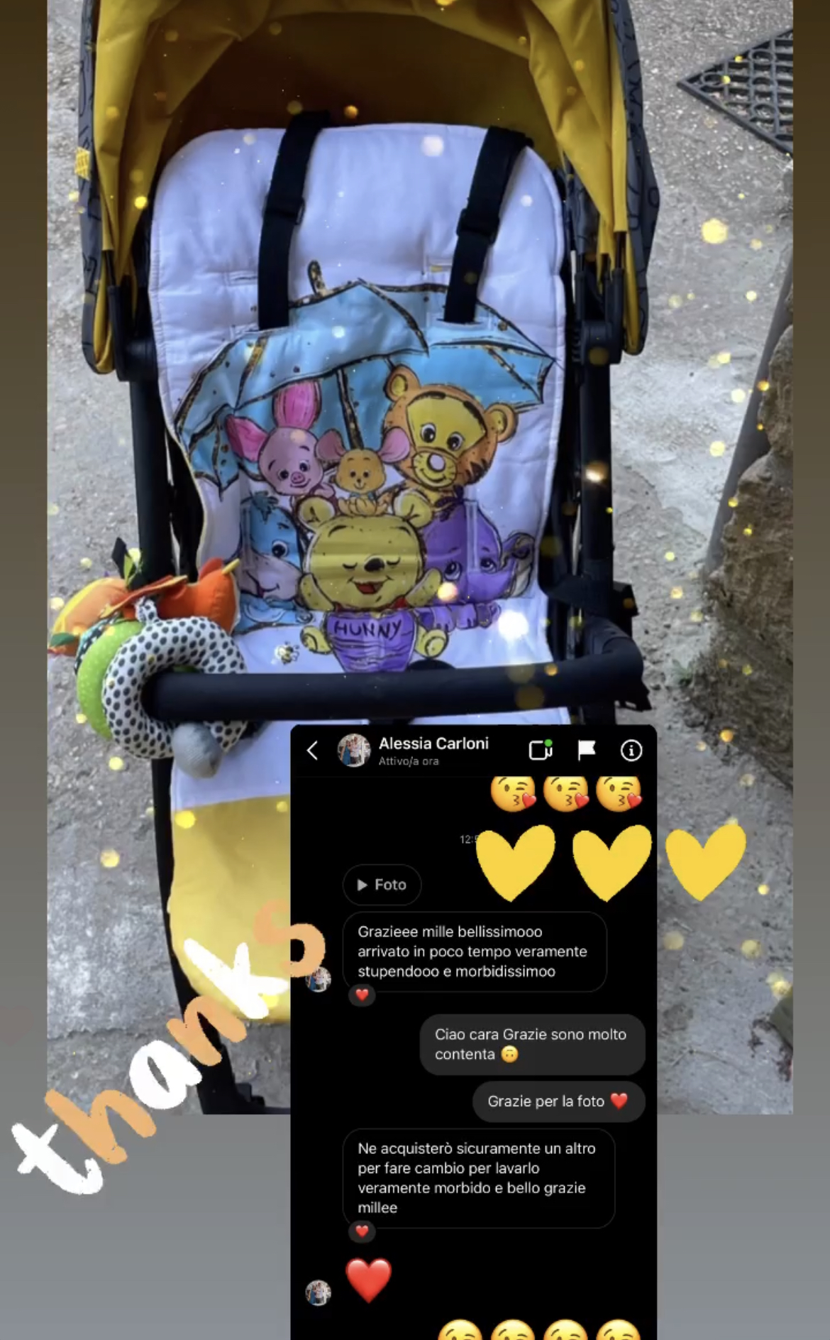 Ho acquistato questo bellissimo sacco nanna con la stampa minnie, proprio come lo desideravo! Un sacco nanna morbido e sopratutto bellissimo! Complimenti a Julia per averlo realizzato e sopratutto per la sua professionalità Prodotto: Sacco nanna con la stampa Simba e nala rosa antico bianco