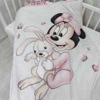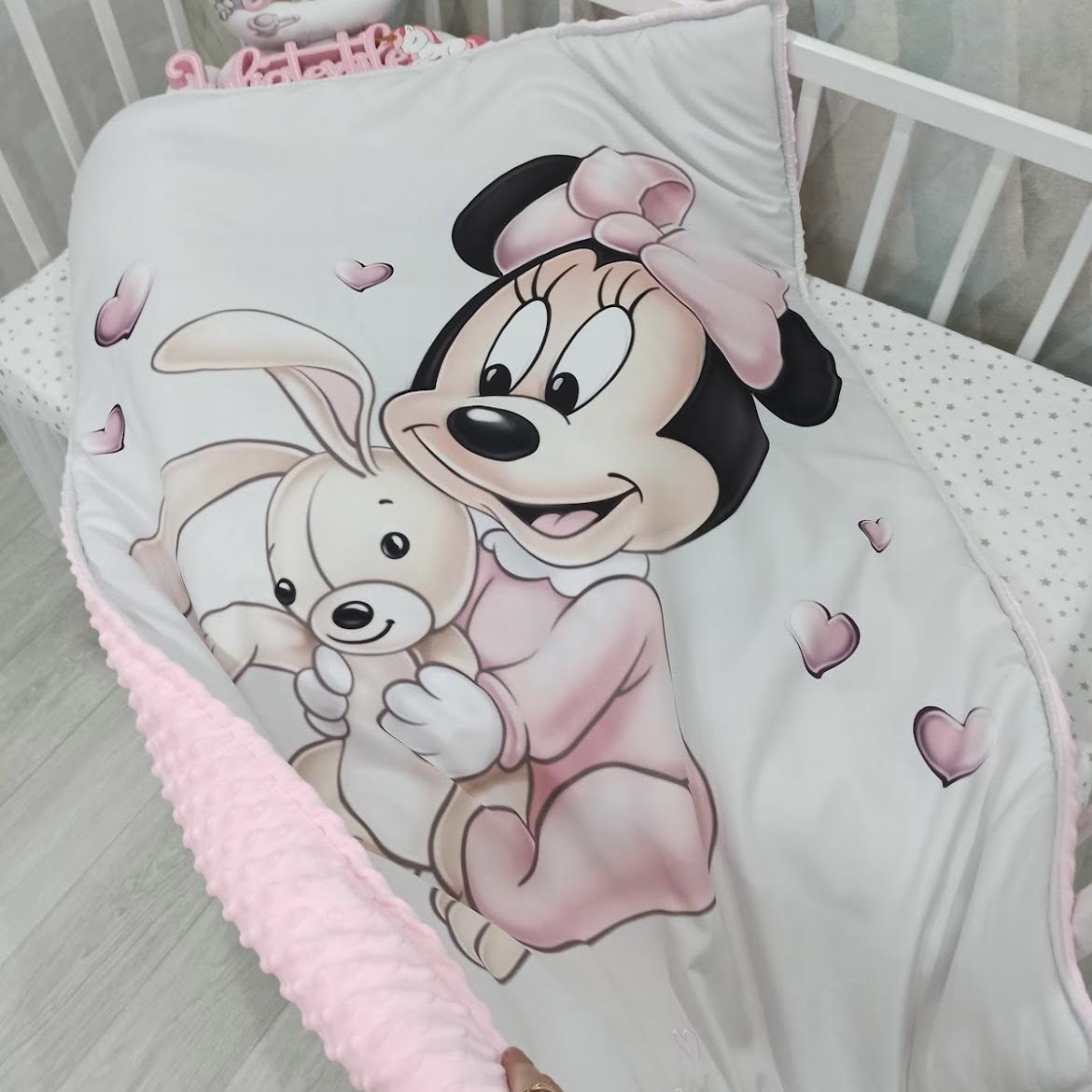 Coperta double face con la stampa minnie e coniglietto rosa bianco