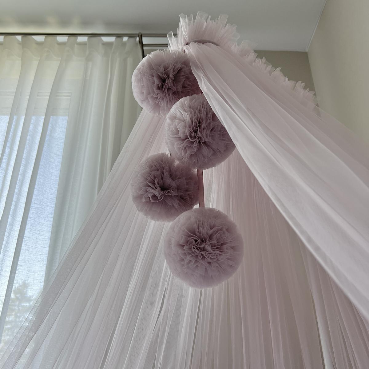 Elegante Velo per la Culla in Colore Antico con 2 Pom Pom