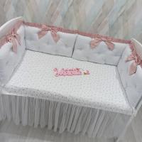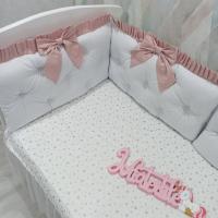 Il set è pensato per un materasso di misura 120x60 cm, ma le dimensioni possono essere realizzate su richiesta, in base alle tue esigenze. Il prezzo verrà calcolato individualmente in base alle specifiche scelte.