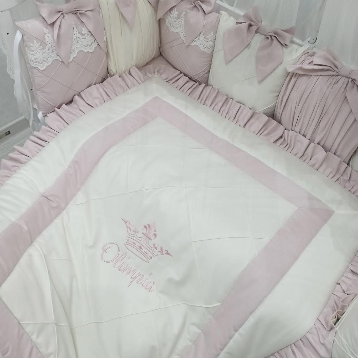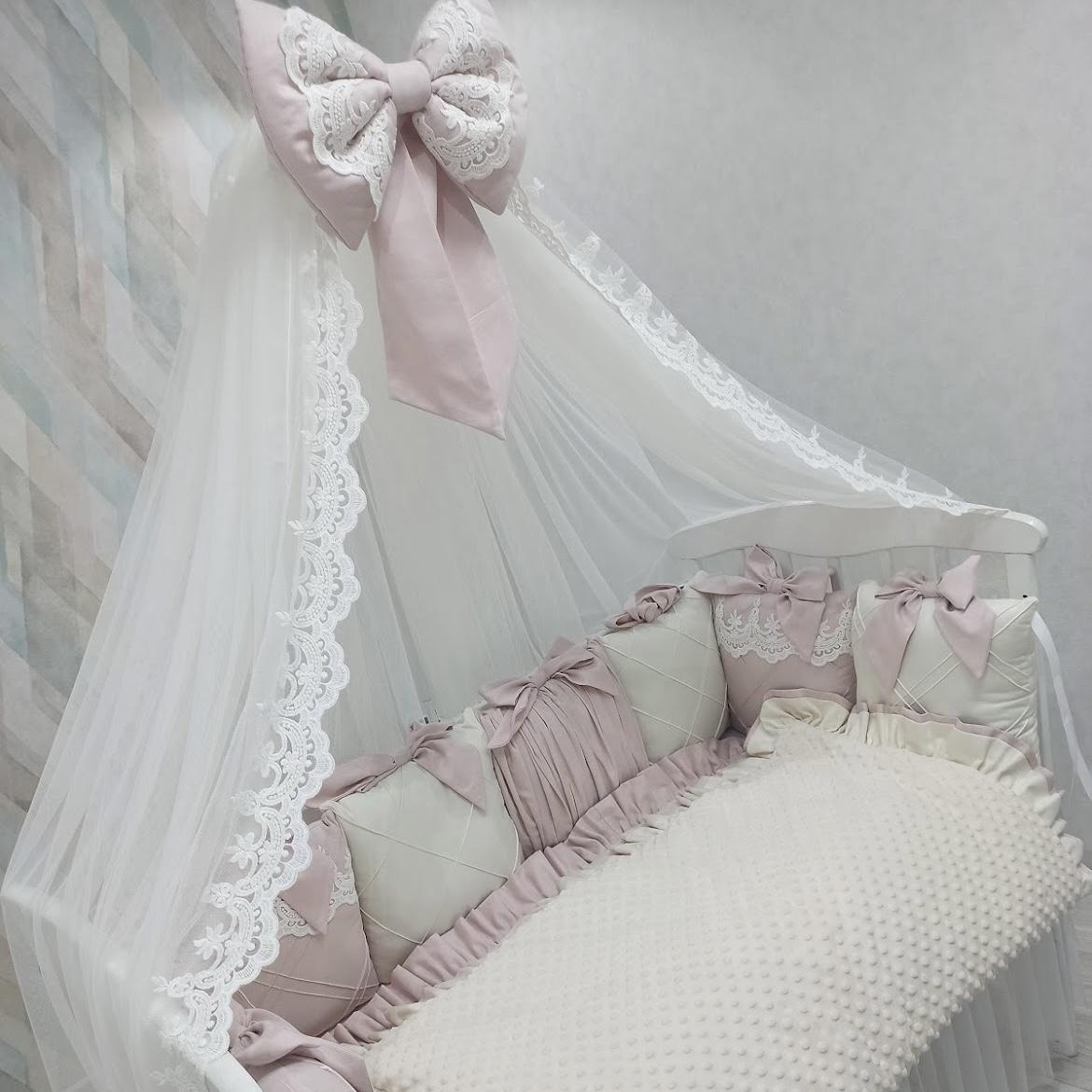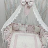 Kit completo classico decorato con pizzo rosa chiaro panna