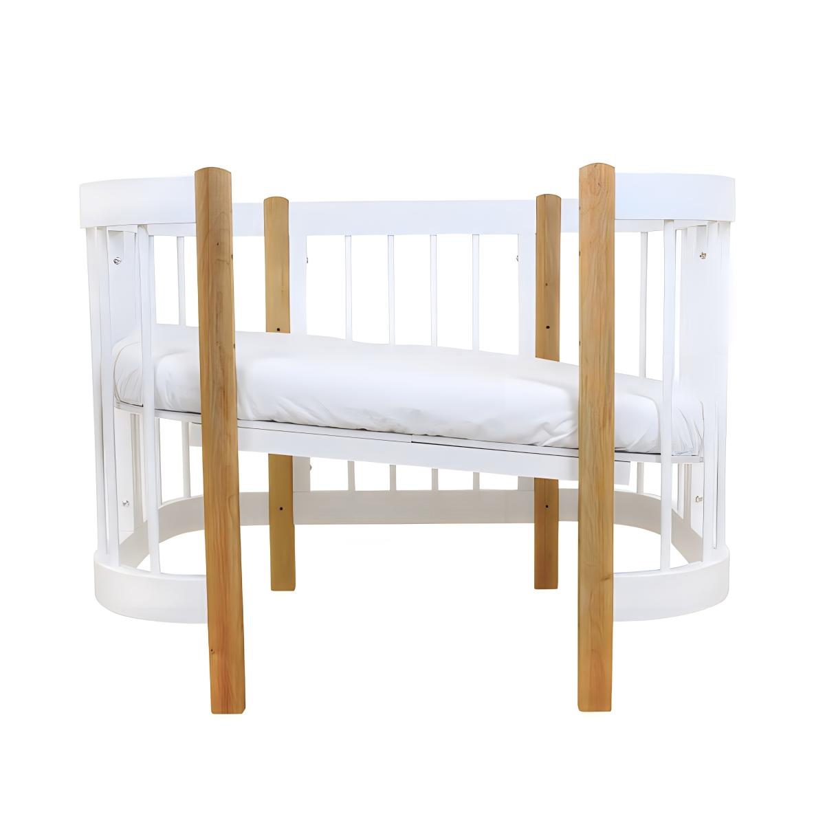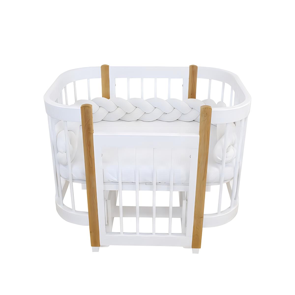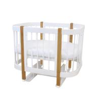 Il design si distingue per le linee morbide e armoniose, senza angoli rigidi, che rendono il lettino più accogliente e confortevole per il bambino. I dettagli ampi e le forme eleganti donano stabilità e libertà di movimento.