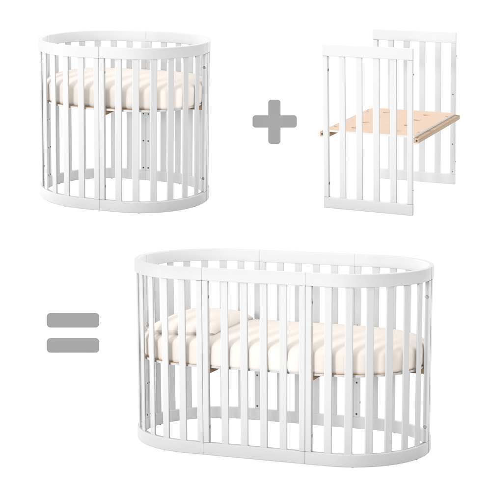 Il lettino arriva completo di tutti i moduli per l’estensione fino a 140x70 cm, senza costi aggiuntivi.
