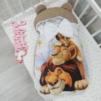 Sacco nanna con la stampa con cappuccio Famiglia re leone Tortora bianco