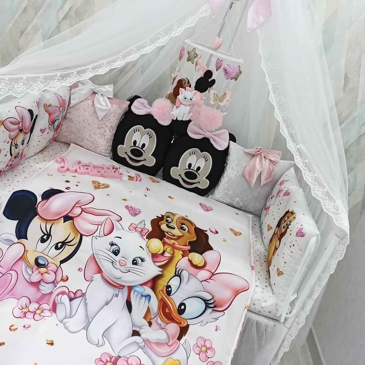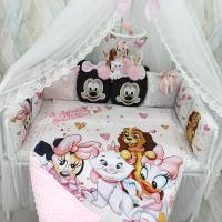 Le madri moderne si preoccupano molto del comfort e della sicurezza dei loro bambini. Ecco perché vi offriamo questo meraviglioso e luminoso set da culla, composto da cuscini e da una simpatica coperta. Il set di cuscini non svolge solo una funzione decorativa, ma anche protettiva. Questi cuscini non solo garantiscono una permanenza sicura del bambino nella culla, ma aiutano anche a sviluppare la concentrazione. Questo set è realizzato in colori rosa con l'immagine di simpatici animali dei cartoni animati Disney. La densità della coperta dipende dal periodo dell'anno; è possibile scegliere la densità al momento dell'acquisto di questo set. Questo set completerà la stanza del vostro bambino!