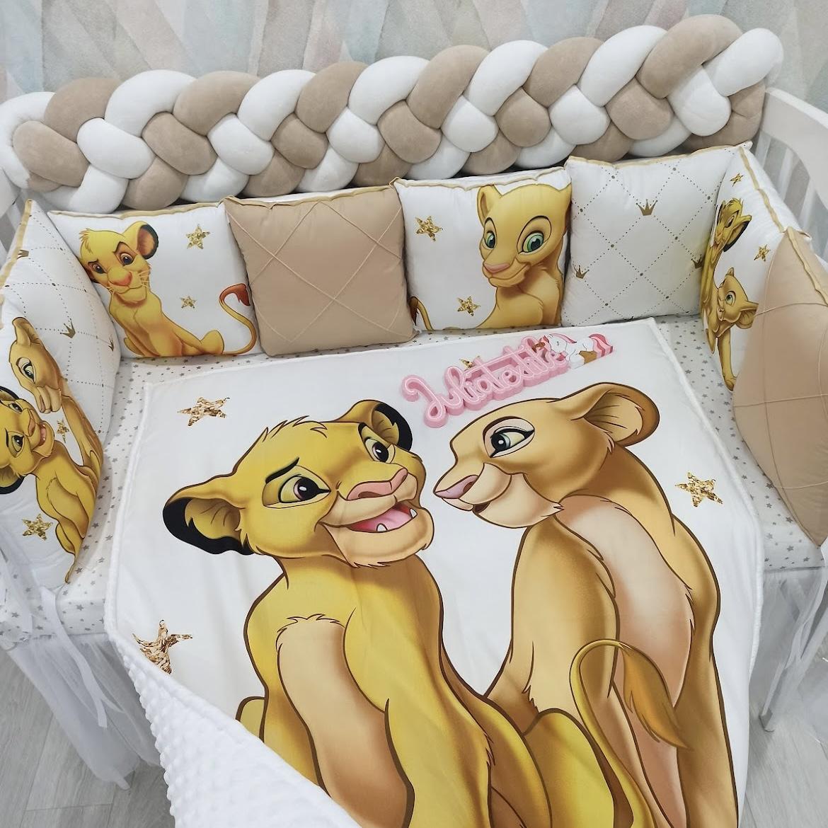 L'intero set è realizzato in delicati colori caffè e presenta due simpatici cuccioli di leone. Acquistando questo set per il vostro bambino, sceglierete un sonno sicuro e sano per il vostro bambino in un letto accogliente.