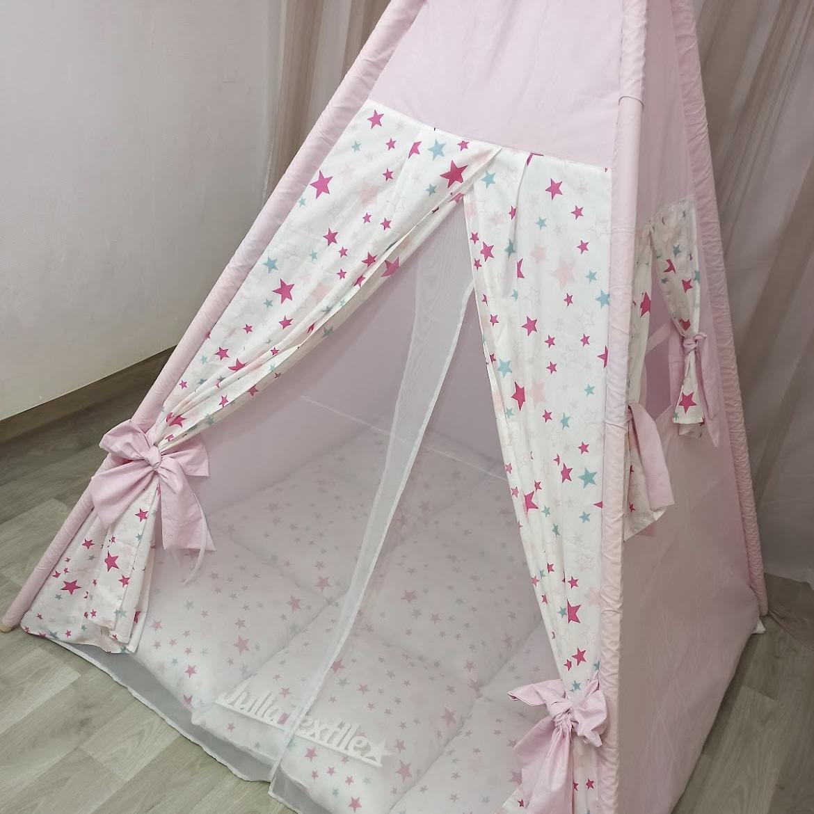Tenda gioco con tappeto rosa chiaro con stelline fucsia