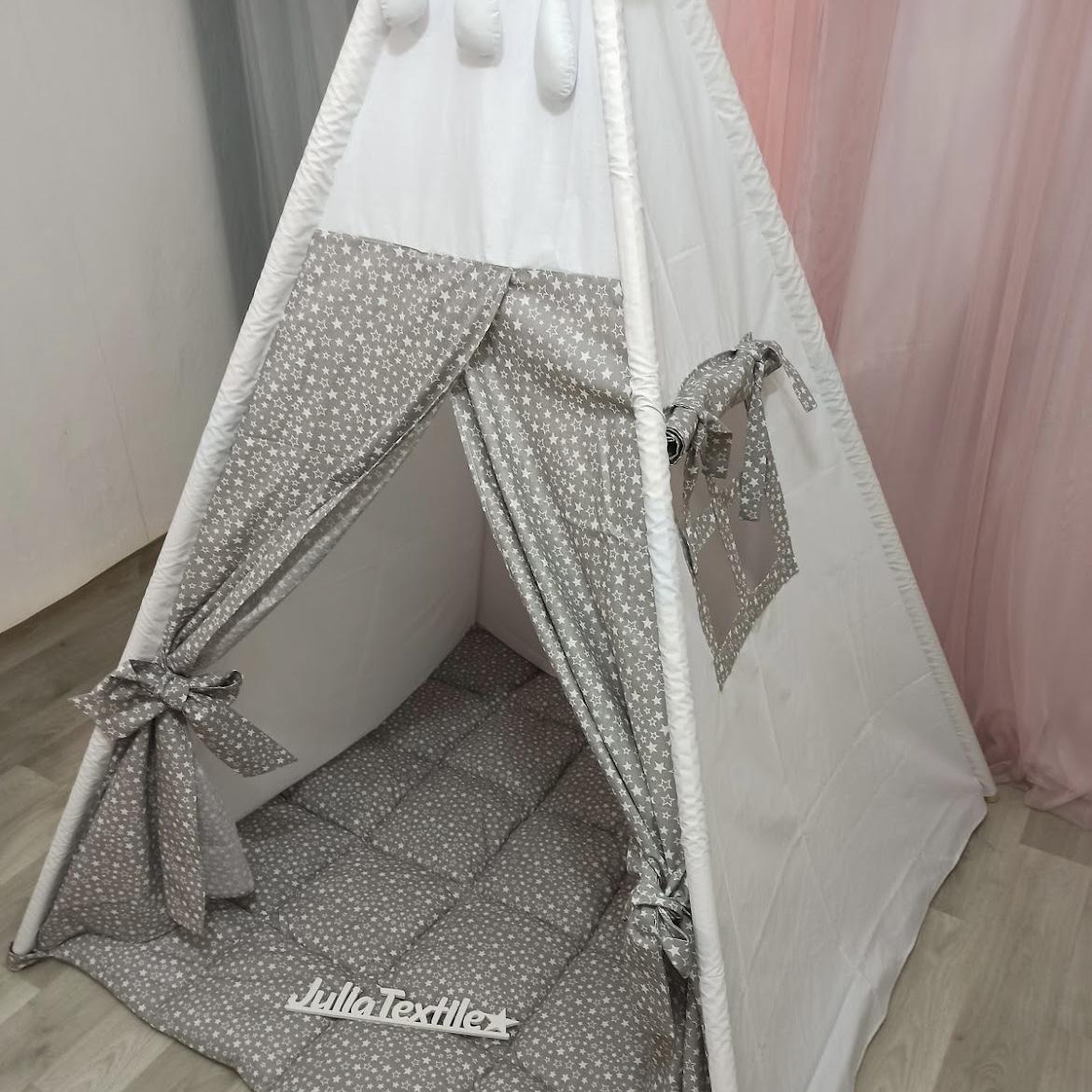 Tenda gioco con tappeto stelline bianchi grigi