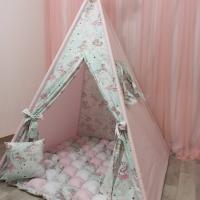 Tenda gioco con tappeto unicorno rosa